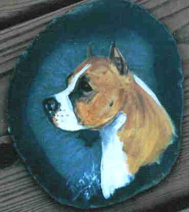 ACRYLIC PAINTED ON AGATE: APPROX. SIZE 3 X 4 INCHES $25